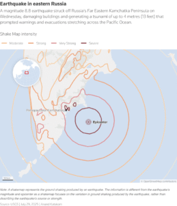 A powerful tsunami wave struck the Northern Kuril Islands in Russia’s Far East on Wednesday, following a magnitude 8.8 earthquake in the Pacific Ocean.